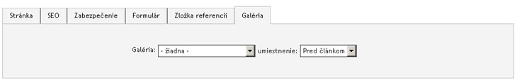 V prípade, ak danú galériu nechcete zobrazovať, stačí pri konkrétnej stránke zvoliť galériu na " - žiadna -".